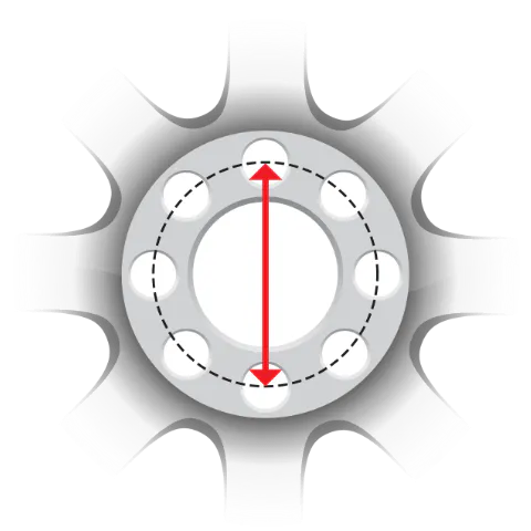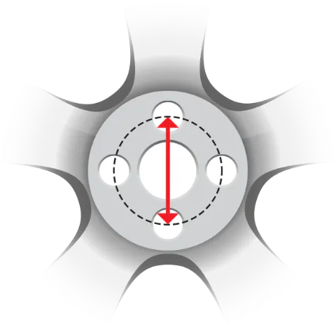 Wheels contain holes in the center. The largest (in the direct center) is the bore. The smaller holes (surrounding the bore) are the lug holes. These are the mechanical attachment point for the wheel to the vehicle. The lug holes are organized in a circular pattern called the bolt pattern. Bolt patterns come in 4-lug, 5-lug, 6-lug, 8-lug and dual. The first number refers to the number of lug holes are on the wheel. The second number describes the diameter of the circle the holes make. As an example, a wheel with a 6x127 bolt pattern has 6 lug holes that are equally spaced on a 127mm circle.