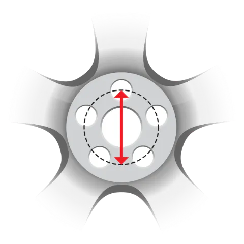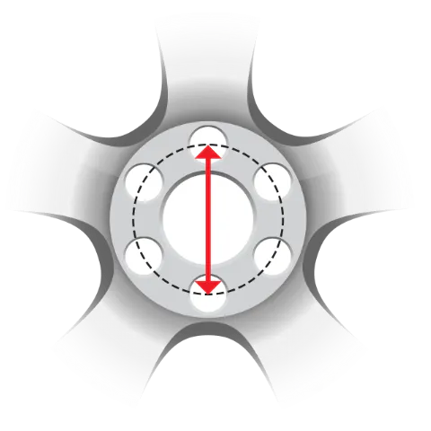 For a 5-lug wheel, the pattern is measured by using a straight line from the backside of one hole to the center of the third hole.
